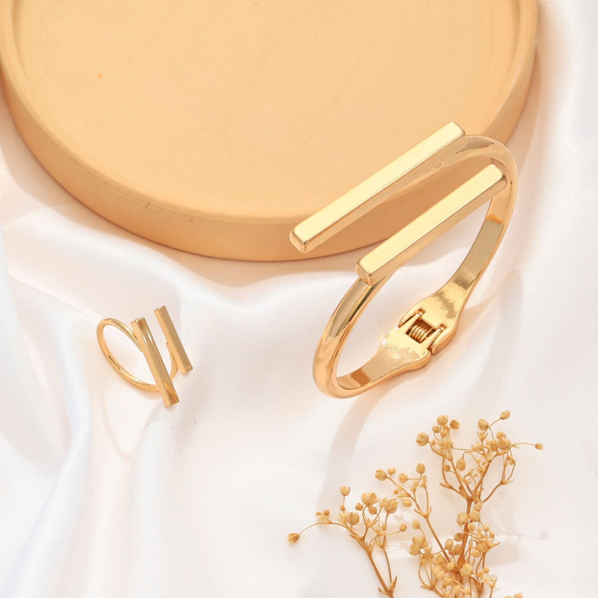 Metal Geometry Square Opening Adjustable Women's Bracelet Ring Jewelry Suit