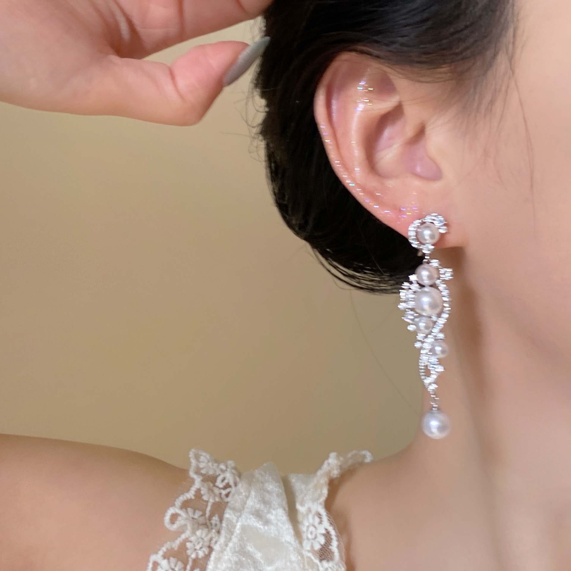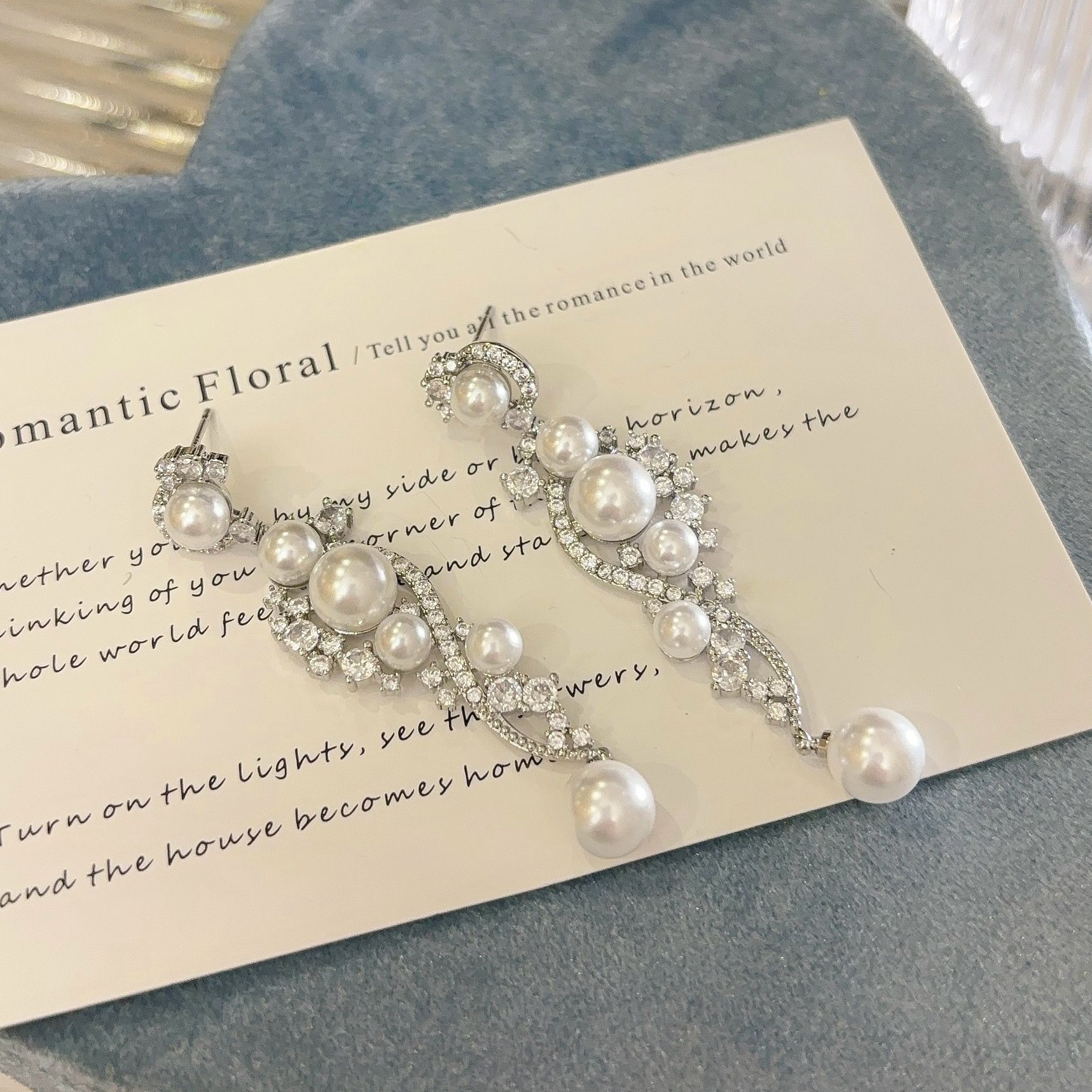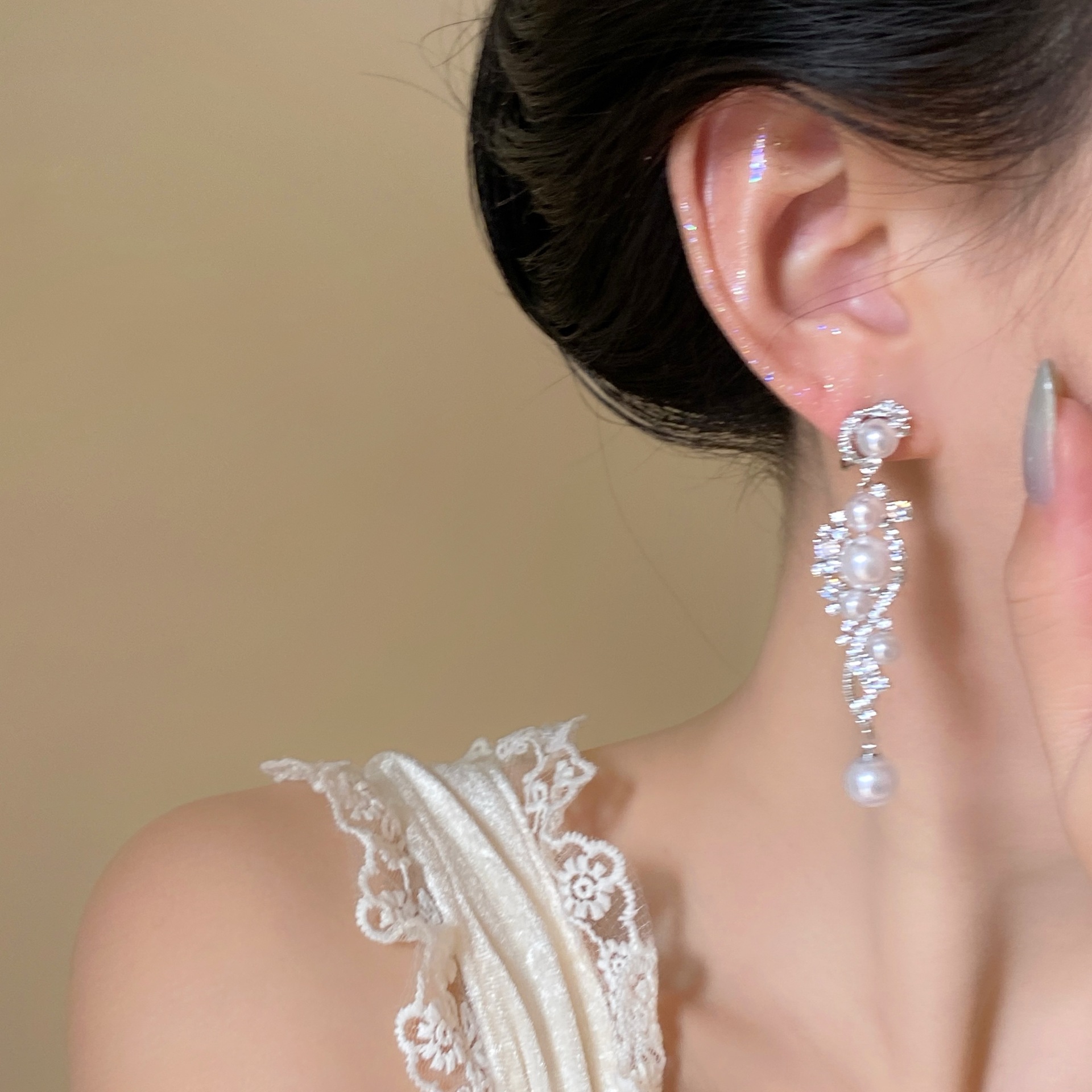 Zircon Pearl Tassel Light Luxury French High Sense Niche Temperament Vacation Style Earrings