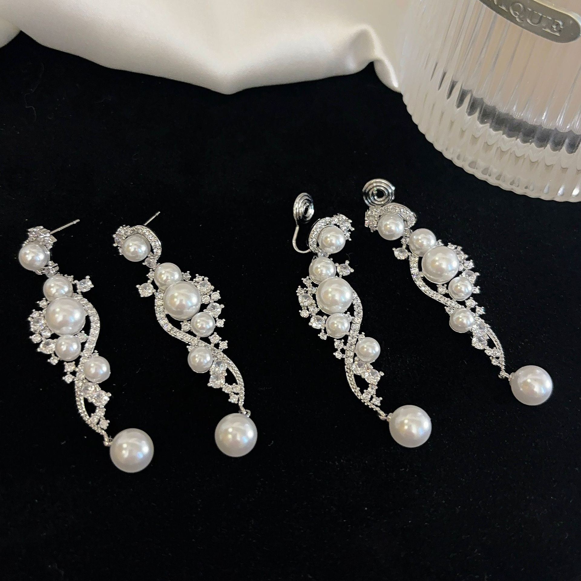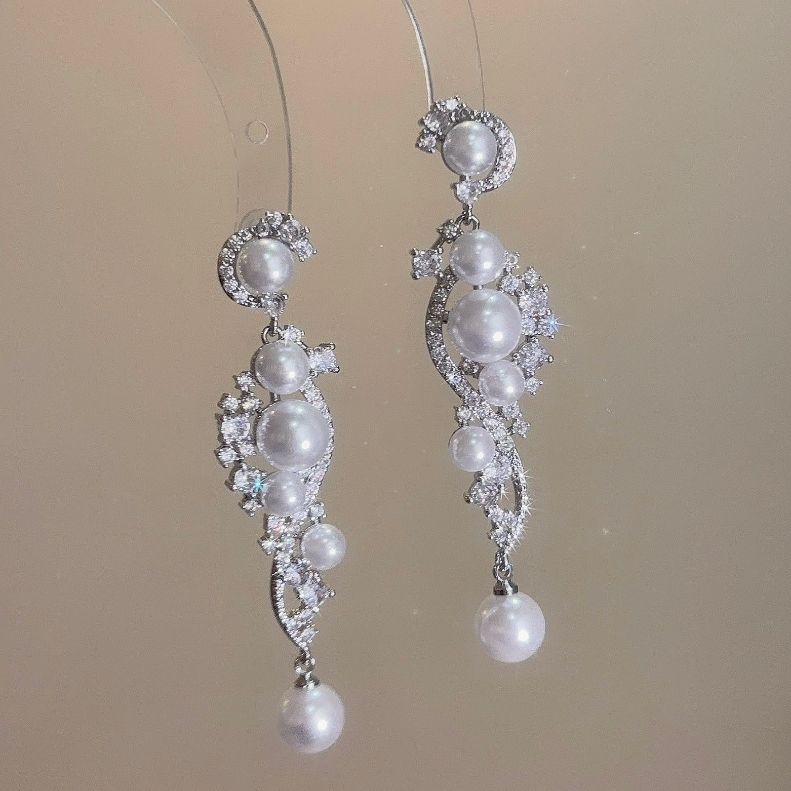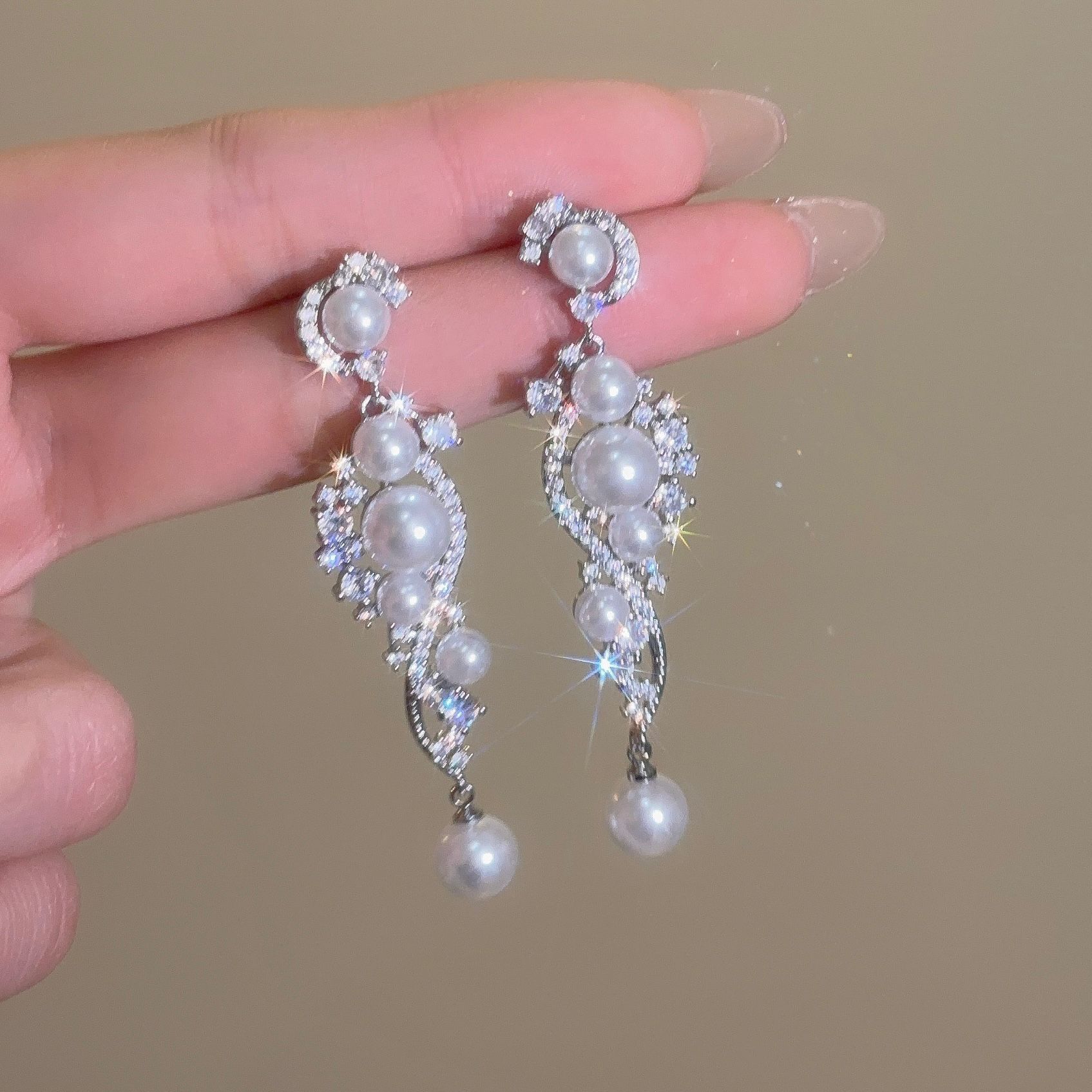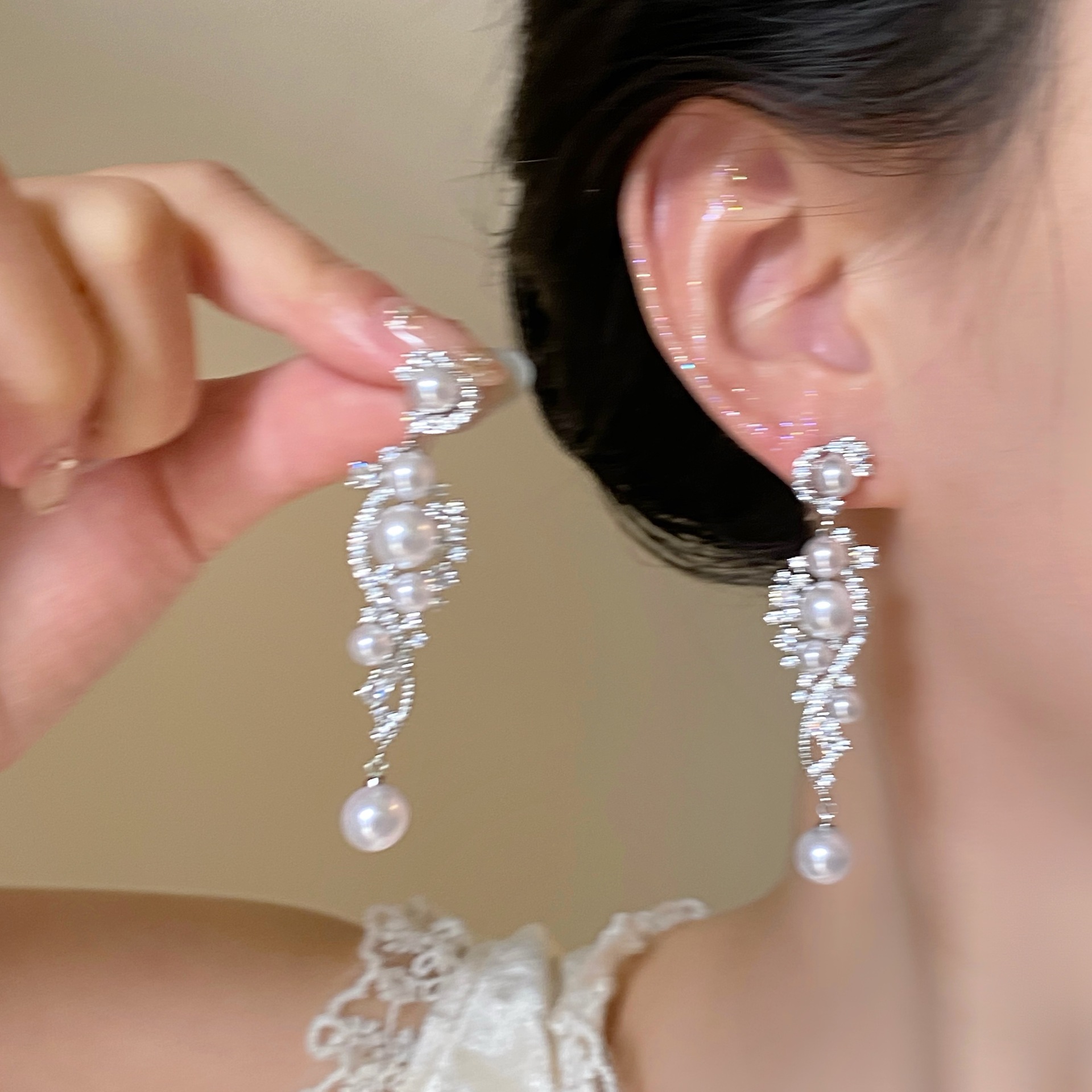 Zircon Pearl Tassel Light Luxury French High Sense Niche Temperament Vacation Style Earrings